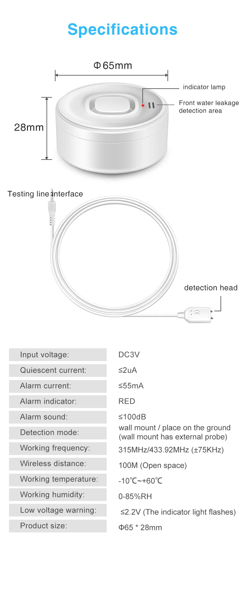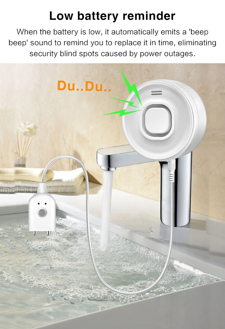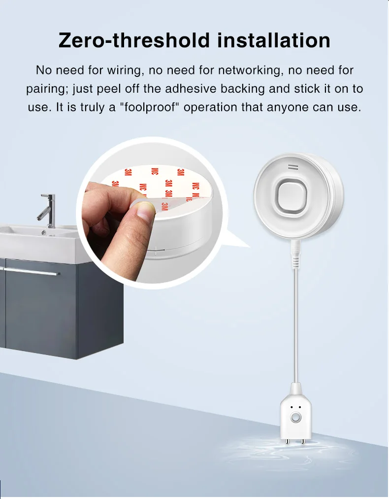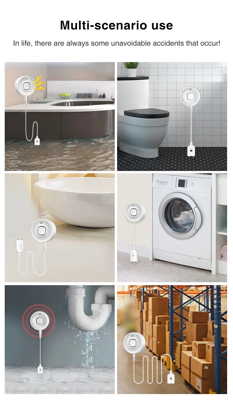 Water Leak Alarm Detector, 100dB Loud Alert Water Sensor, IP55 Waterproof, , Easy Installation for Home Basement Flood NO Smart