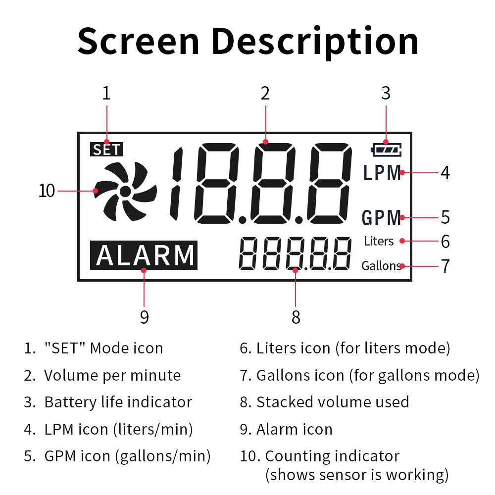 Water Purifier Flow Meter Durable Flow Sensor Monitor Electronic Digital Display Water Purifier Alarm And Power Save Function