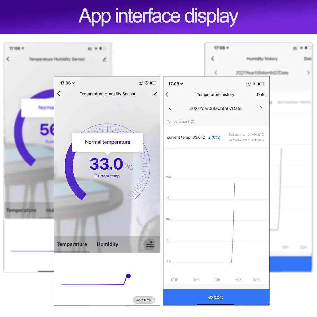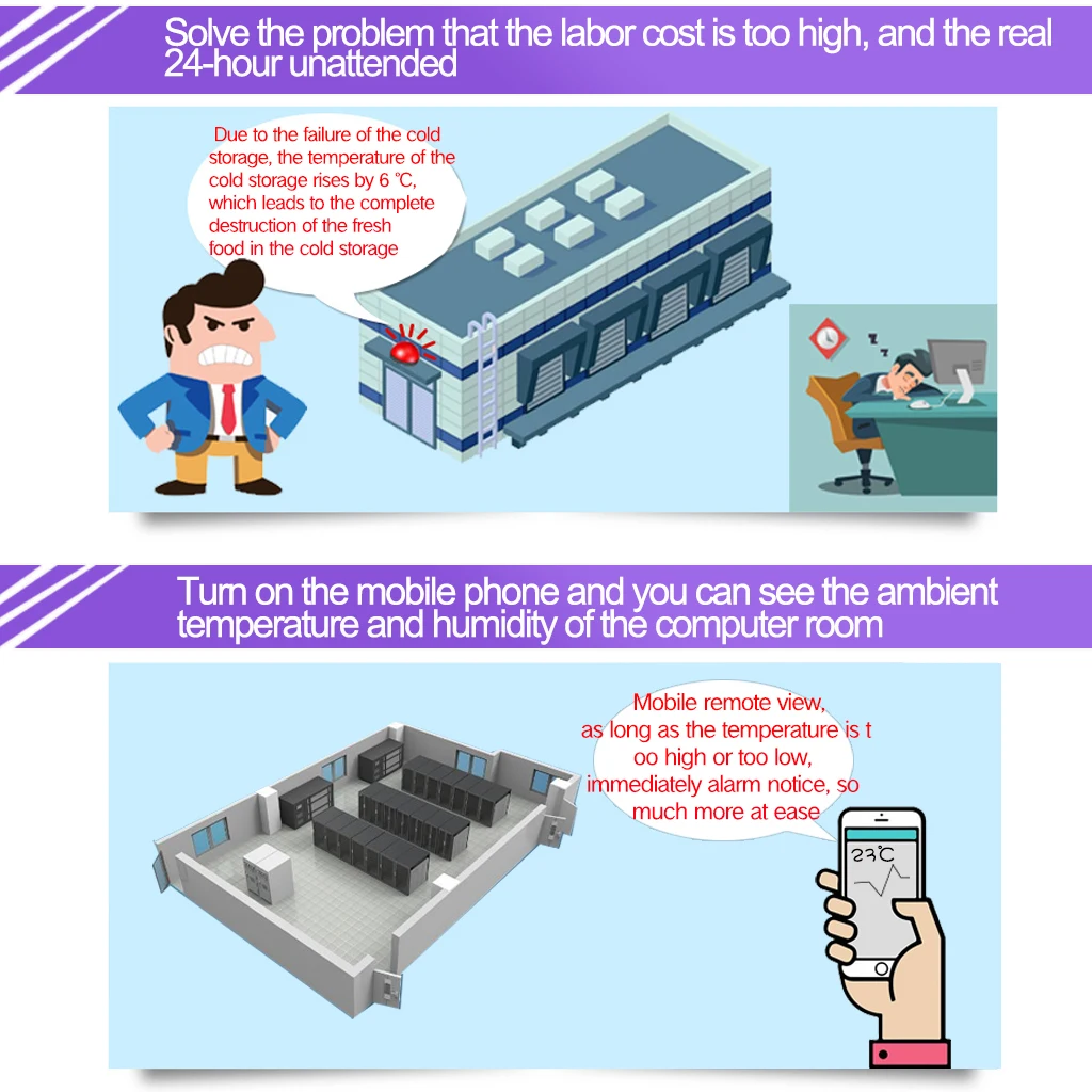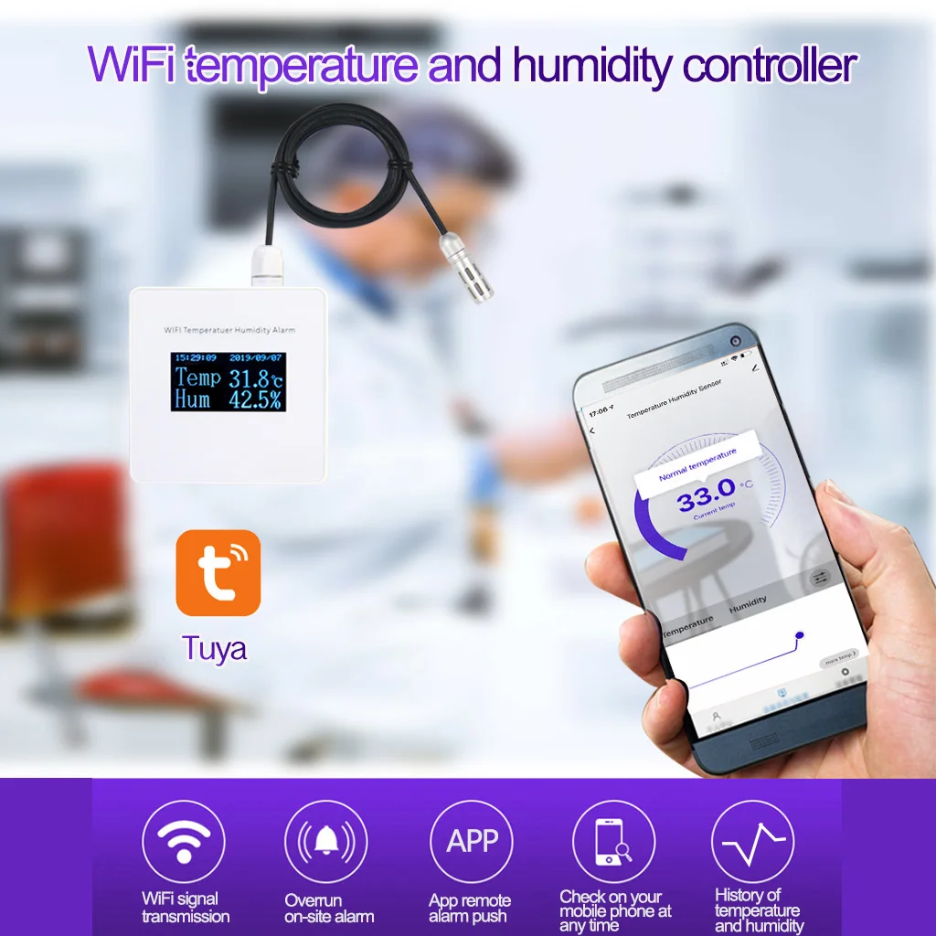 The wifi temperature and wifi temperature&humidity alarm use advanced signal analysis and processing technology to provide ultra-high-precision detection and anti-false alarm performance which guarantees its stability. When the Itemperature and humidity of the detection environment lexceed the set upper and lower limits, it transmits an alarm signal to the mobile APP via WIFI. The product comes with temperature and humidity data collection and export function. This product is suitable for family residential areas, real estate villas, factory buildings, computer rooms, warehouses, office buildings and other places.