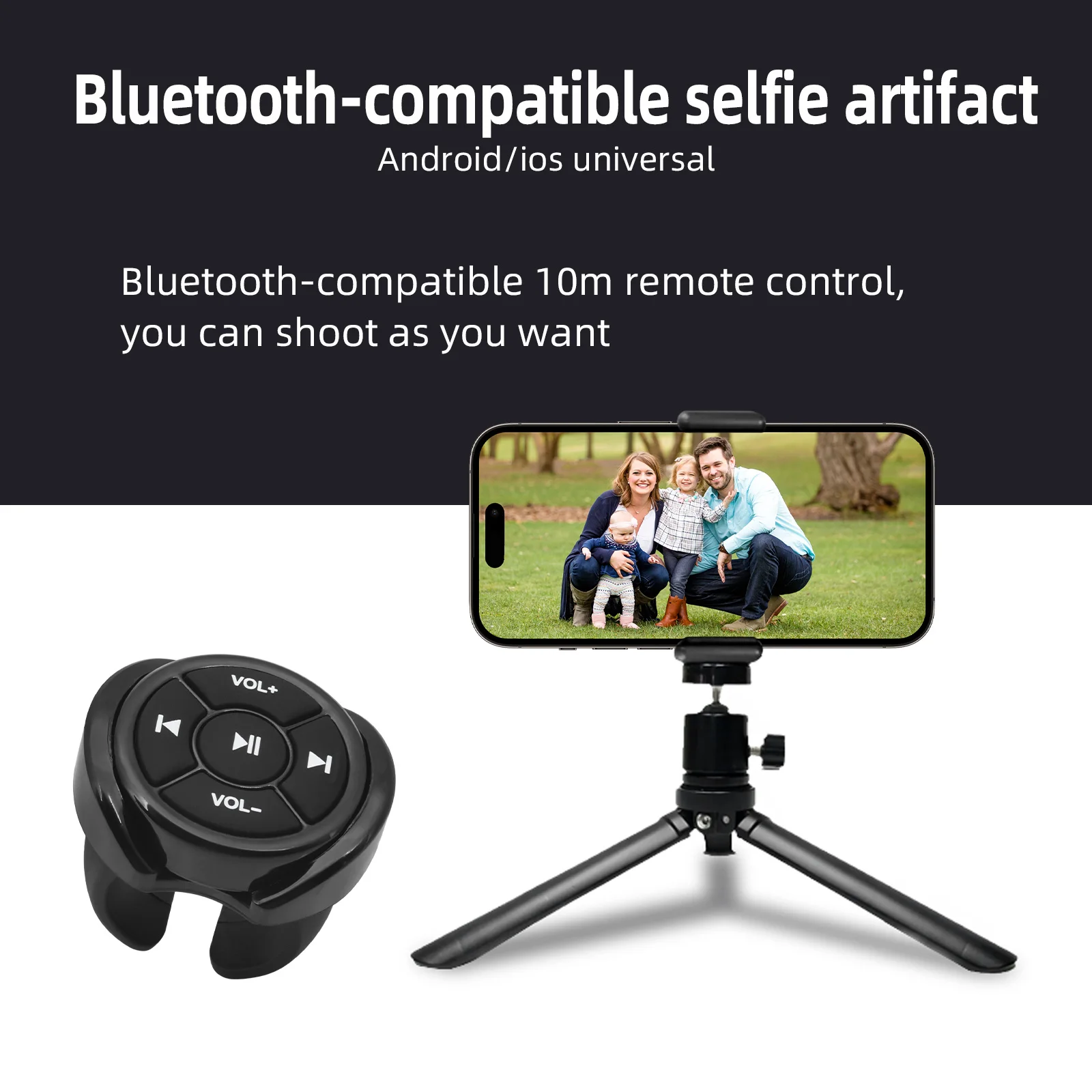 1. No need to touch the smartphone/tablet. With this wireless media button, you can control music, take pictures and wake up the smart assistant with one key.
