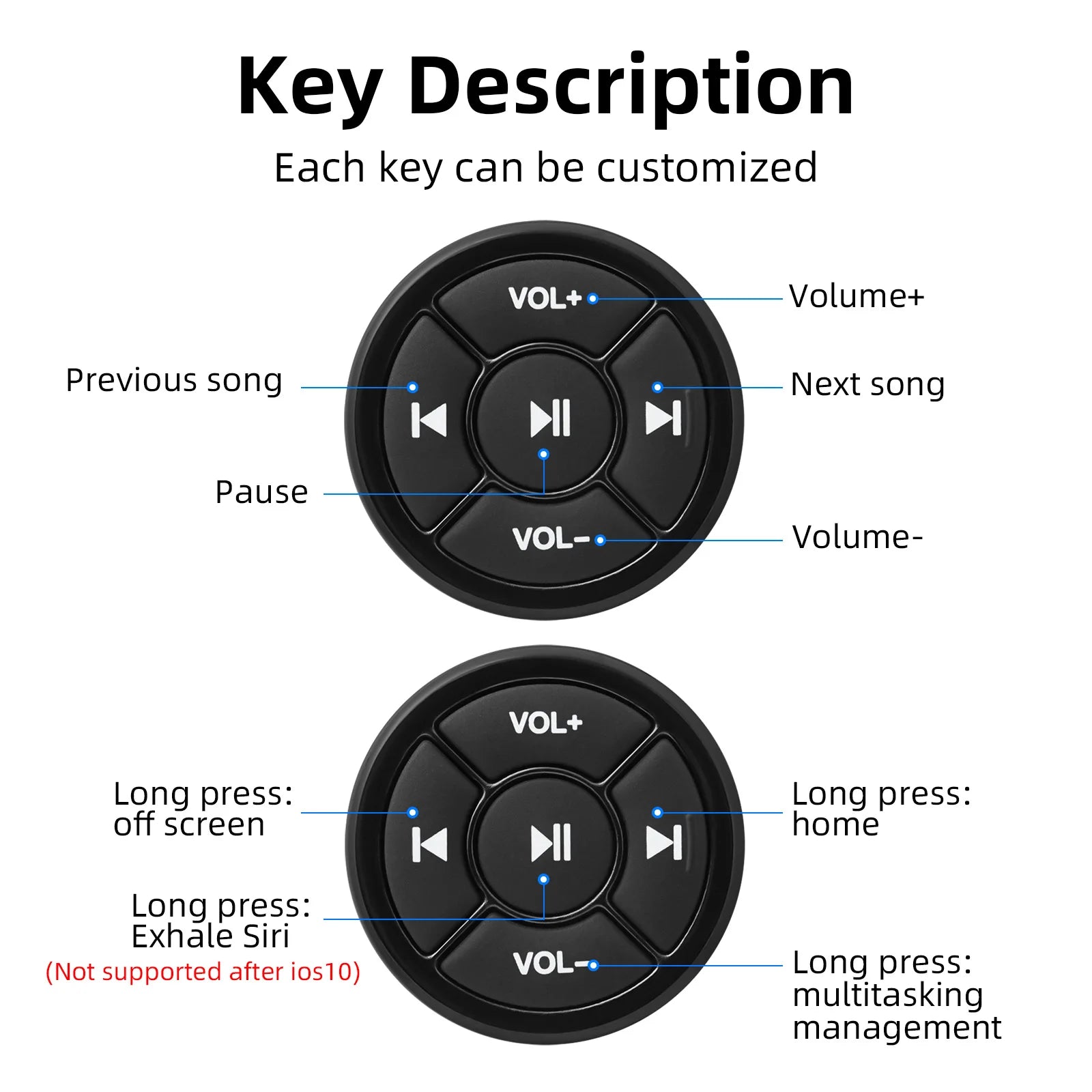 Wireless Media Bluetooth-compatible Button Remote Controller Car Motorcycle Steering Wheel MP3 Music Play For IOS Android Tablet