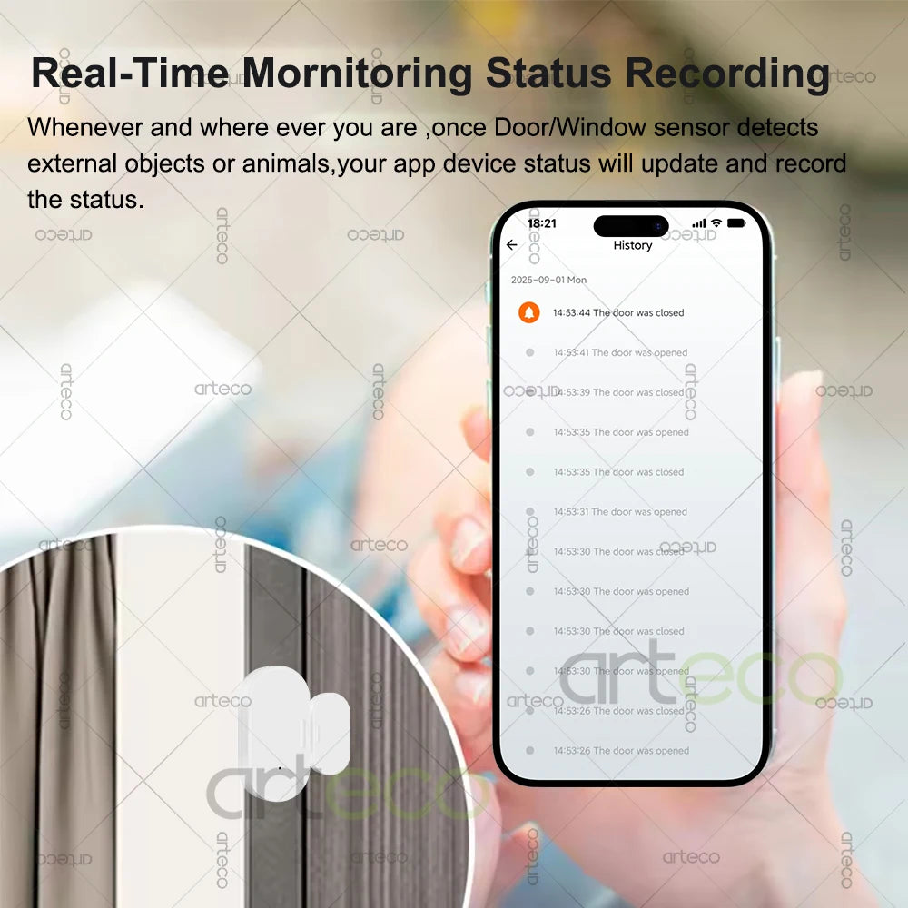 2.Real-time remote monitoring:Whenever and wherever you are,once Door/Window Sensor detects external objects or animals, you will receive a notification by smart phone. Keep your house safe all the time.What you need to do is to keep your sensor with ZigBee hub connected.